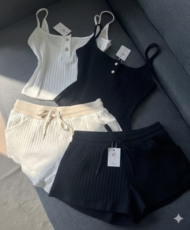 - ست تاپ و شلوارک زنانه کد محصول : me610 جنس ; فانریپ پنبه فری سایز،مناسب:(۳۶ تا ۴۲) رنگبندی :مطابق ژورنال