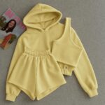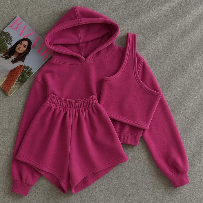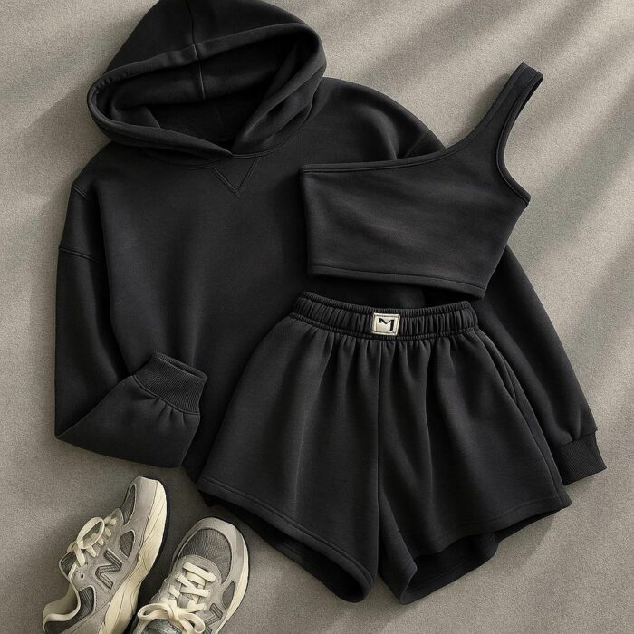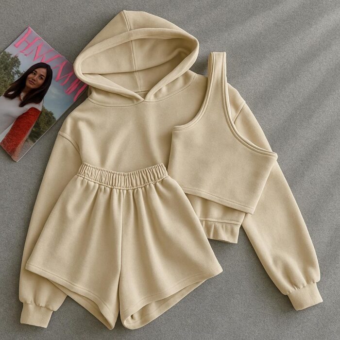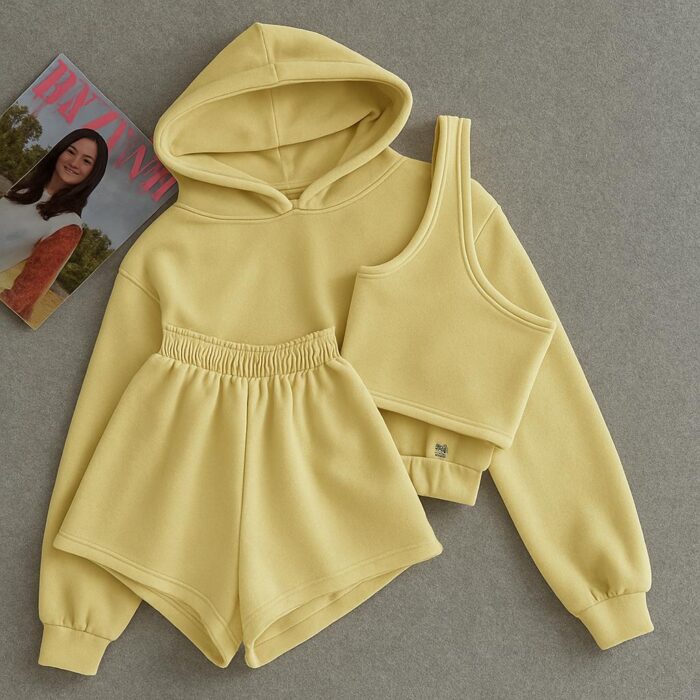 ست هودی کراپ شورتک و تاپ (۳ تیکه)